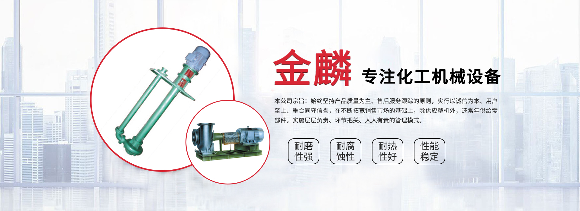 江苏金麟化工机械有限公司拥有各类完好设备150余台/套,中频电炉、退火炉、水泵性能试验台、理化分析室等设施齐全,销售产品的自行生产率达95%以上,年生产能力4000余台/套。
